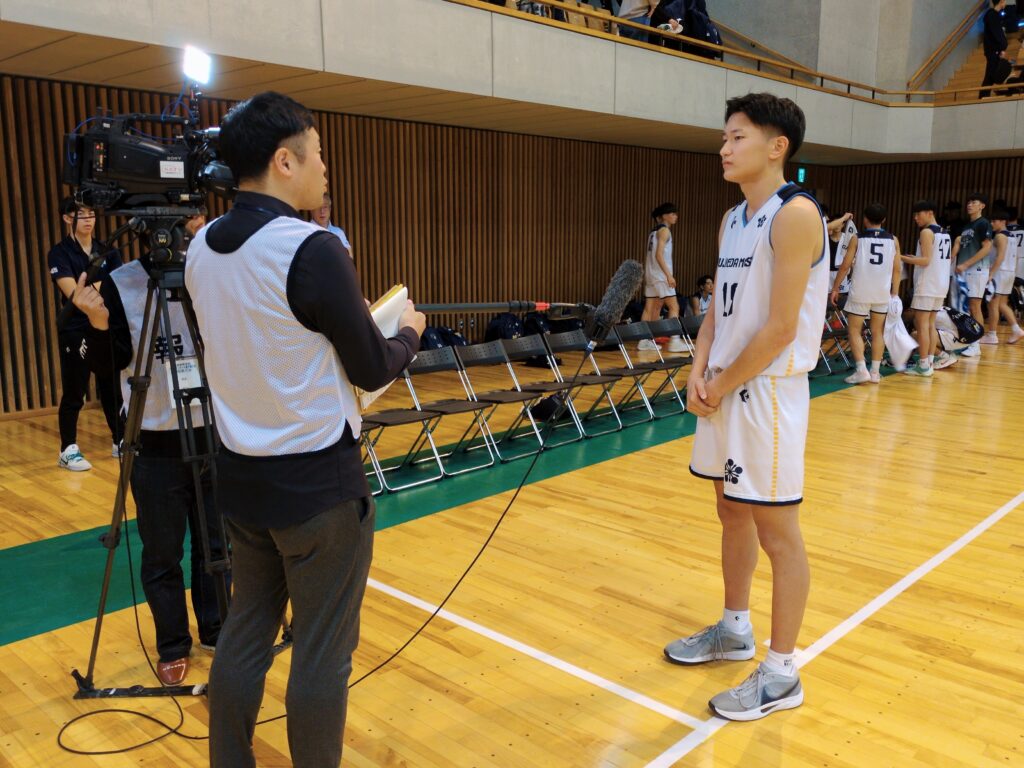 男子決勝リーグおよび女子準決勝戦・決勝戦では高校生レポーターがベンチサイドから選手のプレーやタイムアウト等での様子をコートレベルでお伝えします。また、選手へのリスペクトを抱きながら、高校生ならではのサイドネタも紹介できればと思います。11/3・県武道館では試合後に選手の皆様に取材させていただきました。ご協力ありがとうございました。選手の皆様、頑張ってください。