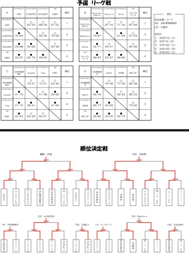 2025年度静岡県U15バスケットボール選手権大会 西部地区順位決定戦最終日(女子)